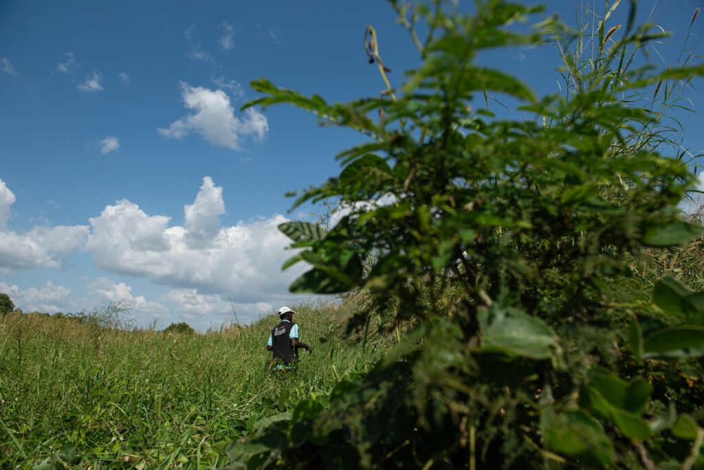 Dominingo Fernando trycker sig igenom det tätvuxna buskaget samtidigt som ilskna insekter flyger omkring. Vi befinner oss uppe på den smala vallen som löper parallellt med Zambezifloden i centrala Moçambique. På ena sidan flyter den breda rödaktiga floden medan den andra siden är områden för byar och odlingsmarker. Framför oss sticker unga träd och buskar upp. Träd som Fernando själv varit med att plantera.