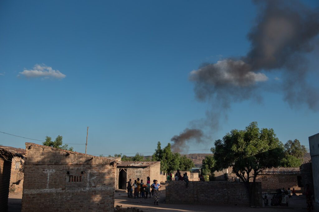 Marken är torr och frånvaron av växtlighet i området påtaglig. Husen, som är byggda av tegel och lera med en traditionell teknik som kallas pau-a-pique, står tätt ihop – ända fram till en jordvall där bebyggelsen övergår till en gigantisk grop. Några barn springer mellan husen, samtidigt som en svart rökpelare tornar upp sig över himlen. Marken skakar till.